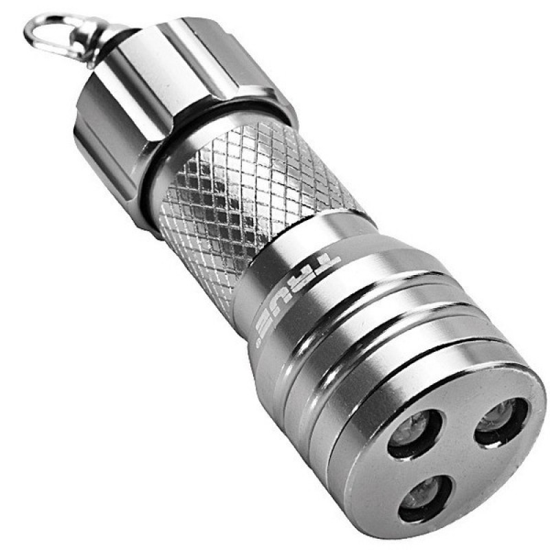 Водонепроницаемый брелок-фонарик с 3-мя светодиодными лампами яркостью 5лм каждая и выходной мощностью 22 Вт, с поворотным механизмом включения. На светодиодные лампочки дается пожизненная гарантия. В комплекте 4 батарейки. Изготовлен из авиационного алюминия с хромовым покрытием. Размеры: 48ммХ19мм