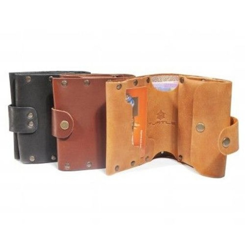 Кожаный кошелек на заклепках Turtle с отделением для мелочи - стильный подарок для современного человека. Кошелек небольшого размера довольно вместительное. В нем имеется кармашек на заклепке для мелочи, отделения для купюр и отдленения для карточек.