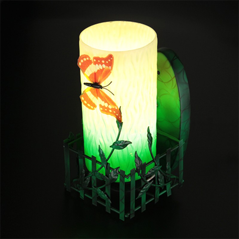 Дизайнеры настенного светильника подобрали настолько качественные и красивые материалы, краски и полутона подобраны так точно, что сам по себе светильник является уже украшением интерьера, а при включении превращается просто в кусочек весны на стене с порхающей бабочкой. Светильник бабочка подойдет для интерьера детской комнаты, спальни. Тип лампы: 4A (обычный цоколь) Питание: сеть 220 Вт Материалы: метал, стекло Размеры светильника: высота 27 см ширина 13 см плафон 20 см